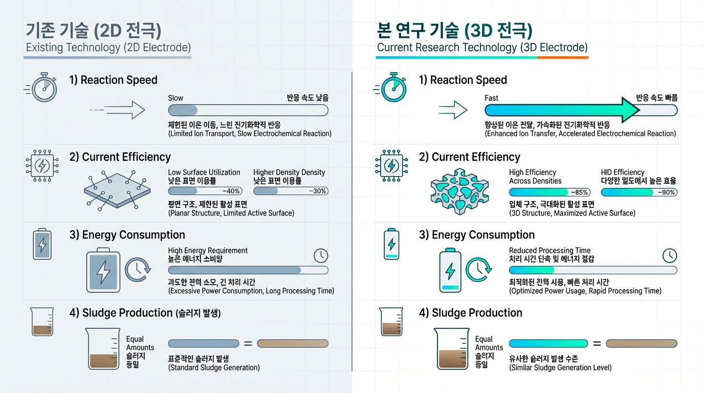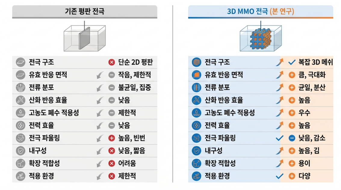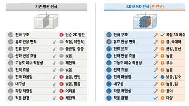 기존 평면 전극과 3D MMO 전기촉매의 차별성