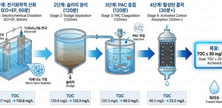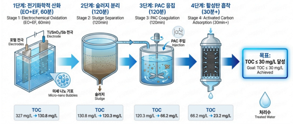 전기화학 및 복합 공정의 반응 특성을 AI가 학습·예측하고, 수질 변동(pH, EC)에 따른 전극 인가 전압 및 펄스 주기의 실시간 가변 로직을 제어하는 폐루프 운영 구조로 설계